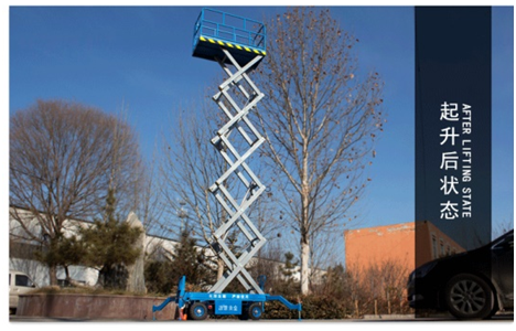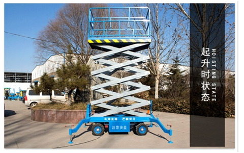 赵经理采购的是我们常规10米、载重500公斤的升降平台,它的工作台尺寸为2100*1230mm,外形尺寸2250*1350*1530mm,剪叉式升降机整机重量为1360kg。常规产品的行走方式为人力牵引,升降方式为接入380v/220v电源升降。(也可以根据客户不同的需求更改行走与升降方式)。