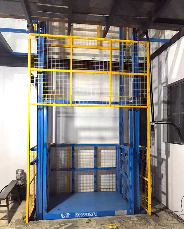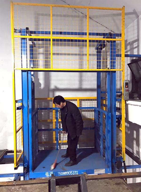 浙江海盐鲍总采购的这款1吨升降货梯的尺寸是1500*1100mm,载重1000kg,提升高度是3500mm,这个现场环境是在原有车间加层后,改为仓库的一个安装环境,从1500mm单方向进出。