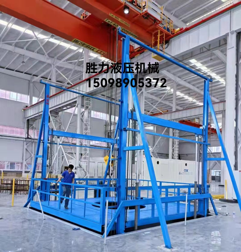 导轨式升降货梯是依靠液压系统作为动力单元,采用液压油缸作为主要动力,通过电机驱动液压油泵,使油缸直顶,驱动重型链条和油丝绳运动,从而带动货梯平台在轨道间平稳运行,是用于建筑层楼间、厂房、工厂、仓库运送货物的专用液压升降设备,起升高度从1米至20米不等,载重量从300公斤至30吨不等,是目前货物运输的较为理想的设备选择。