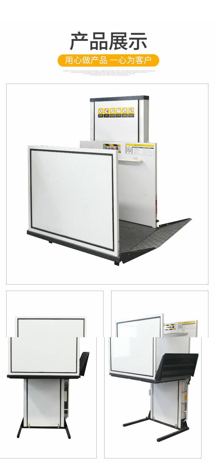 无障碍升降平台一般升降高度在3米以内,轿厢尺寸根据家中空间进行设计制作。我司可派技术人员免费到家中勘察测量,并给出详细的技术方案后,再进行生产与安装,满足客户的使用要求。