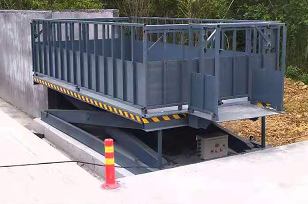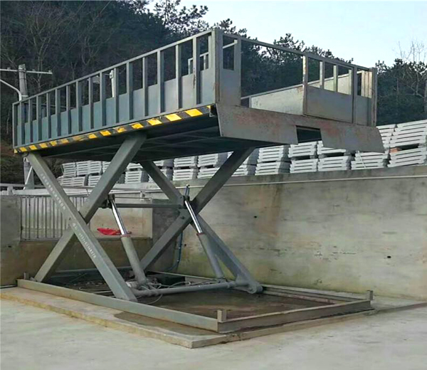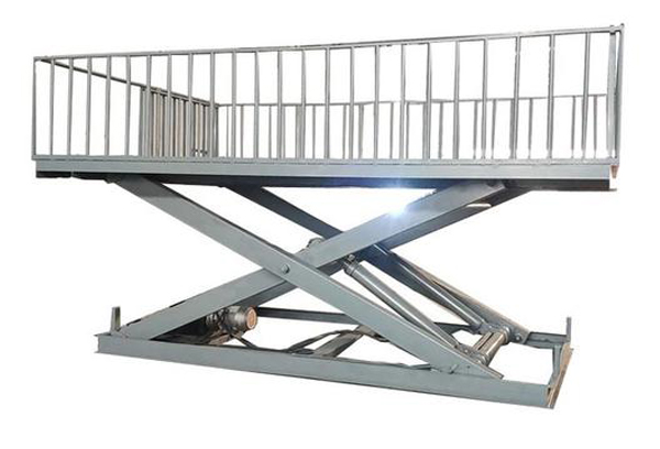 固定剪叉式卸猪台连接货车与地面,它的剪叉机械结构,使卸猪台起升有较高的稳定性,升降动力可分为220V或380V电源,台面使用花纹板。