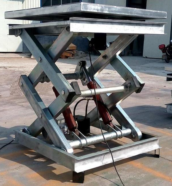 不锈钢剪叉升降货梯是指底架、台面、支杆部分采用304不锈钢制作,通常适用于食品或制药企业,或者对洁净、耐腐蚀性要求较高的环境使用。