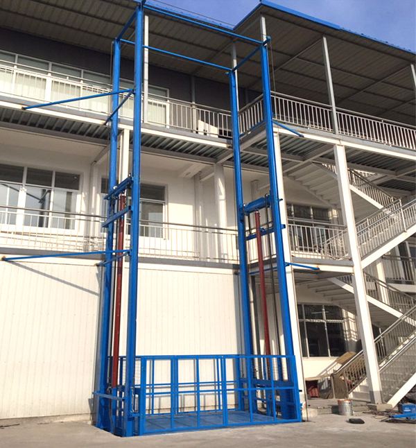 室外导轨式升降平台通常是把货物从室外运输到室内的每一层,是一种非剪叉式液压升降机械设备,用于多层工业厂房楼层间的货物传输。它主要采用液压油缸作为主要动力,通过重型链条和钢丝绳传动,保证机器运行的安全。导轨式升降平台的安装无需地坑和机房,顶层高度不受限制,可以量身打造高效率的送货平台。室外导轨升降平台一般在安装过程中会在每层加固U型辅撑,以确保平台安装墙体的一侧更加的牢固及升降平稳。